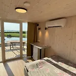 Terraço oferece vistas para o lago. O quarto inclui chuveiro, lençóis de banho e toalhas.